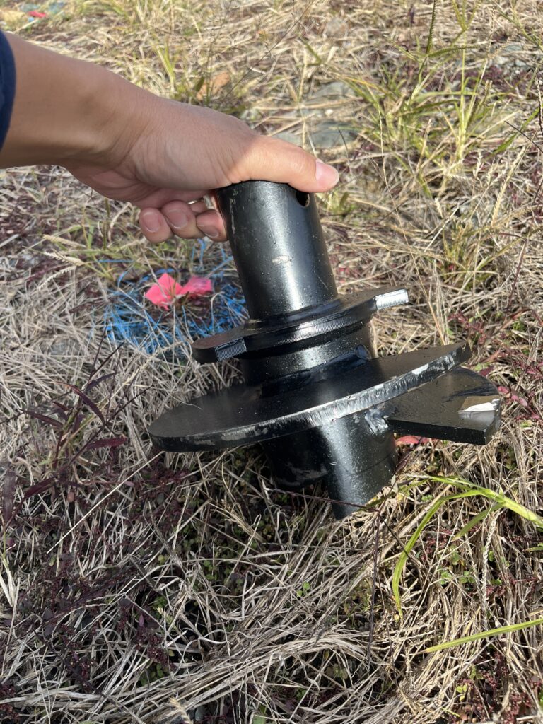 鋼管杭とはまた違いますがスクリュウ型の刃物を埋込、それが支持になり