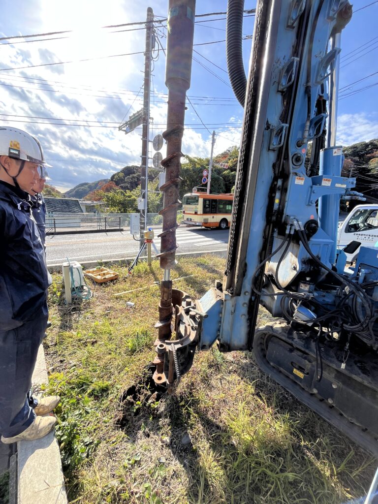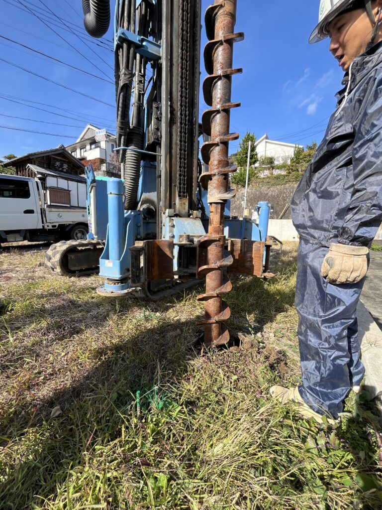 特殊な重機で埋込最後に管を支持層までさして終わり♪