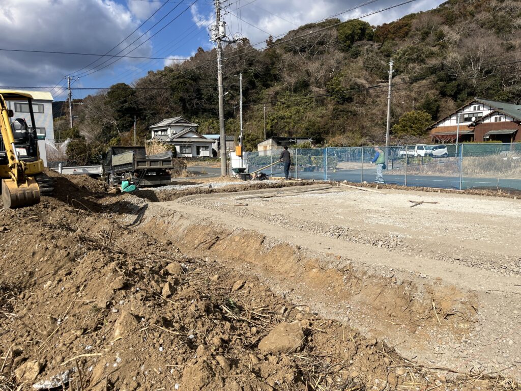 砕石で外周やスラブを形どります。転圧してレベルで高さ見てと下地を奇麗に作ります。